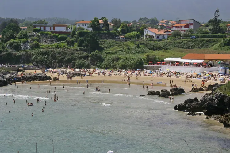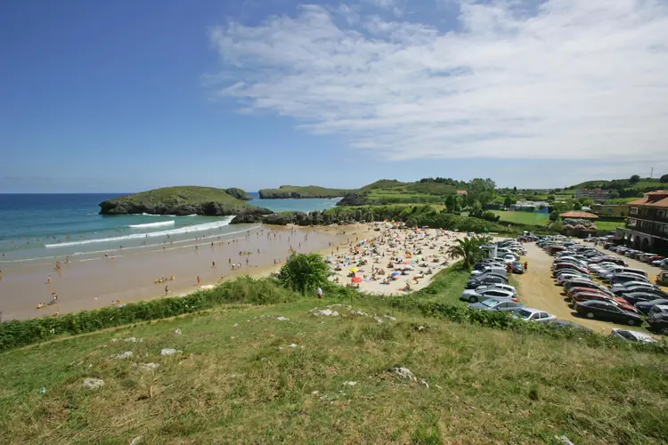 Playa España. En un entorno de prados y grandes acantilados se enmarca la playa España, sometida a un potente oleaje, en la que la proximidad de un camping explica la considerable afluencia de veraneantes a ella. Características generales: ..